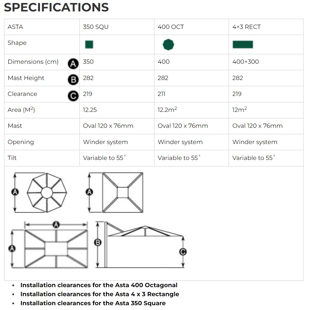 • 360° umbrella rotation; 12 position rotate lock – on insertable lock pin on lower mast