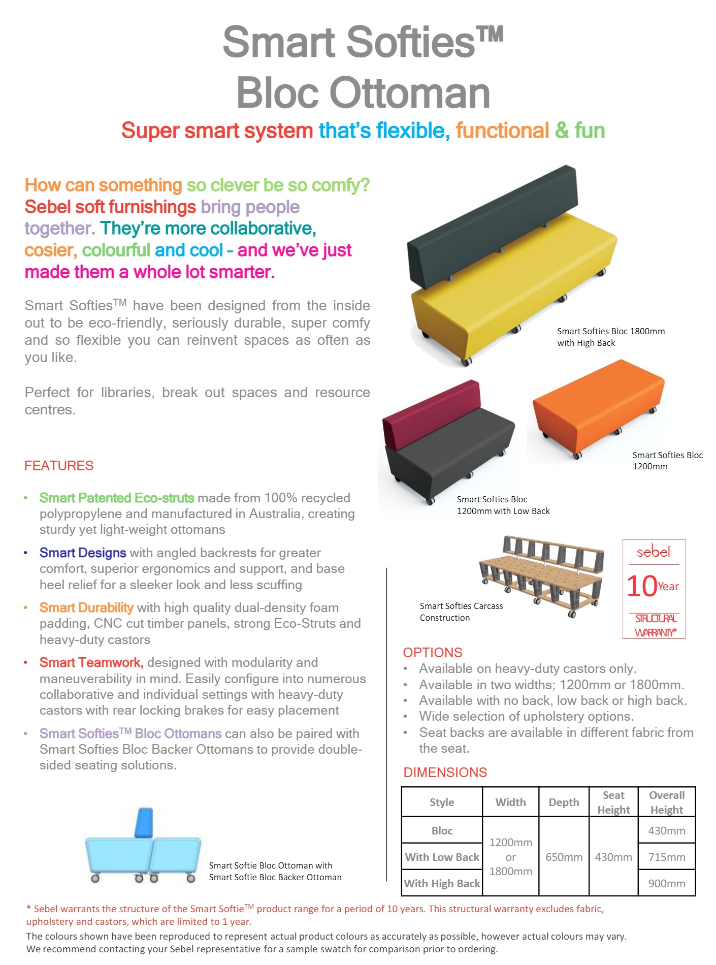 • Smart Softies Bloc Ottomans can also be paired with Smart Softies Bloc Backer Ottomans to provide double-sided seating solutions